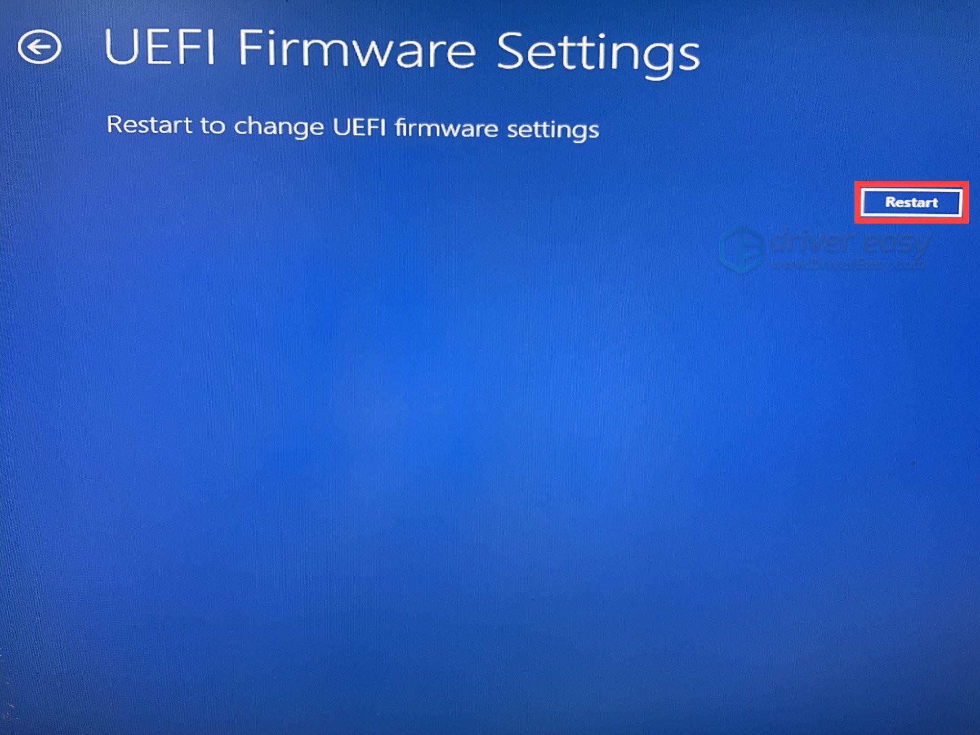 - Click Restart and your computer will boot into the BIOS setup screen.