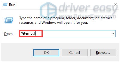 - On your keyboard, press the Windows logo key and R at the same time to invoke the Run box. Type %temp% and then press Enter on your keyboard.