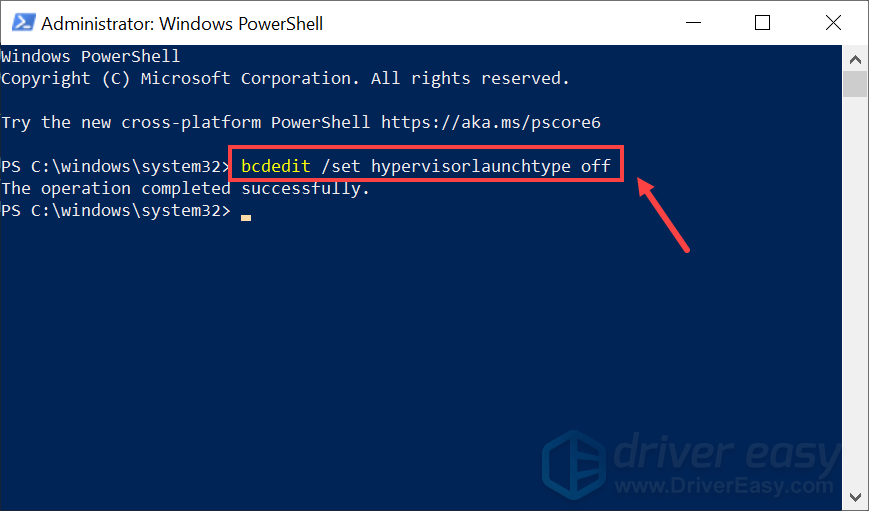 - Type the command bcdedit /set hypervisorlaunchtype off and press Enter.