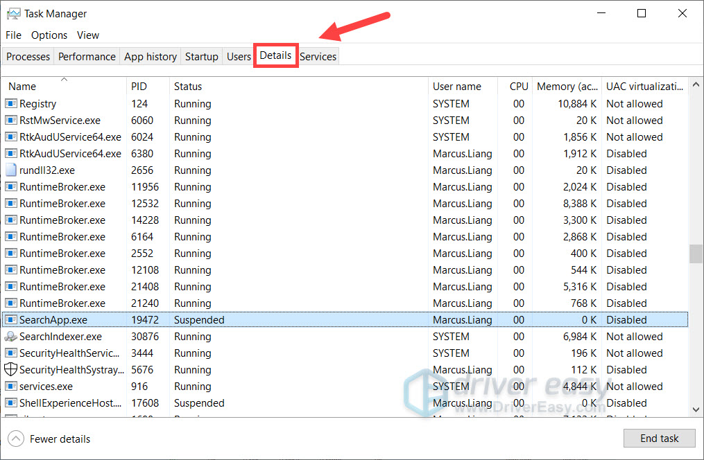 2) Select the Details tab. Look for any of the following processes: