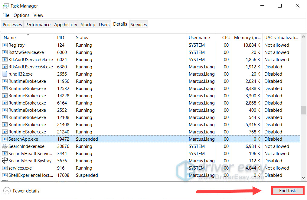 3) Then select the process and click End task. Now you can check if Windows Search is working.