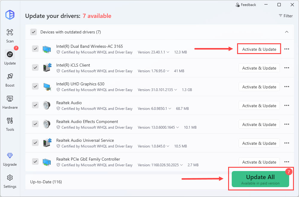 - Click the Activate & Update button next to your Wi-Fi adapter to automatically download and install the correct version of this driver.